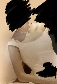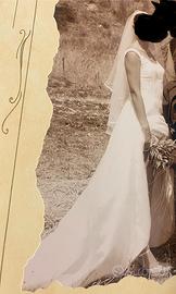 Abito da sposa color avorio decorato con piccole perline, sottogonna con cerchio ( da applicare se si desidera ) e velo corto con bordino in raso. Taglia 42/44. Prezzo trattabile.