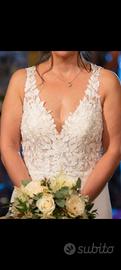 Elegante con un lungo strascico con la base in pizzo tessuto morbido e molto comodo. Marchio LUNA NOVIAS indossato solo il giorno della cerimonia