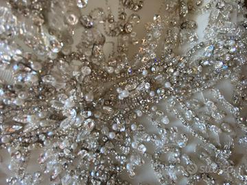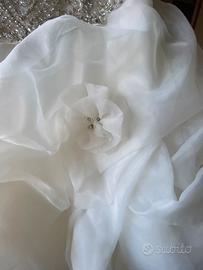 Vendo abito da sposa, in perfette condizioni, senza alcun difetto. modello principessa con corpetto a cuore di strass e perline. Gonna impreziosita da fiori con strass. Taglia 40.