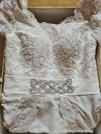 Abito da sposa taglia 40/42 in seta color avorio chiaro. Modello unico disegnato da stilista. Ricami fatti a mano, incluso nodo celtico in vita a rappresentazione dell'amore eterno. Possibilità di prova (zona Roma est).