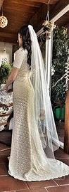 Abito da sposa realizzato a mano, pizzo uncinetto, colore avorio tg 40/42