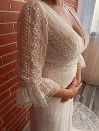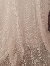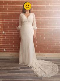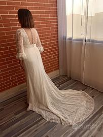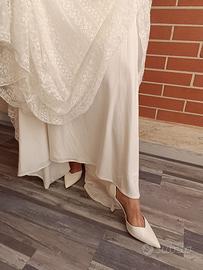 Abito da Sposa DAVINO SPOSE taglia 44, Bianco avorio, Collezione recentissima in eccellenti condizioni già lavato in tintoria, maniche lunghe al gomito, scollatura a V, piccolo strascico leggero, Abito glitterato, lavorato tono su tono eventualmente velo corto e scarpe da sposa n°36. Ritiro a mano a Roma