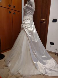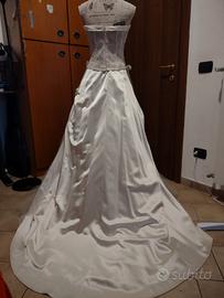 elegante abito da sposa pari al nuovo, in tessuto pregiato, indossato solo x le sfilate, il modello e composto da gonna e corsetto, taglia 42/44.