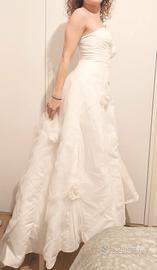 Abito da sposa, ultima collezione di Egon Fustenberg, colore bianco, taglia 40. Compreso di Velo lungo 3 metri e cerchio per ampliare la sottoveste.