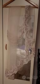 Vendo splendido abito da sposa. Colore avorio, con dettagli in cristalli e gonna morbida. L'abito è stato lavato in lavanderia specializzata ed è in perfette condizioni, conservato nella sua custodia originale. Infine il velo in pizzo con cristalli uguali al corsetto. Misure: taglia 42 italiana. Io sono alta 1.60m e ho indossato tacchi da 7cm.
