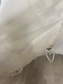 Abito da sposa Rosa Clara con strascico e velo . Il bordo della sottogonna e lo strascico sono sporchi internamente nella parte che striscia in terra pertanto è da lavare, o accorciare a seconda della propria altezza.