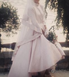 abito da sposa rosa con inserti neri ,completo di velo e ampissima sottogonna tutta in tulle doppio colore tg.40 davanti più corto