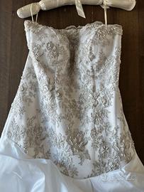Abito da sposa sartoriale, taglia 44, modello ampio e scenografico.