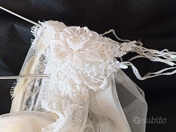 Vendo splendido abito da sposa sartoriale taglia 44 (sono alta 168 cm) realizzato in tulle e preziosi ricami con romantica allacciatura sul retro con nastro incrociato. Corredato di velo con pizzo e sottogonna per la perfetta caduta della gonna. In perfette condizioni lavato in lavanderia e usato solo il giorno del matrimonio. Presenta solo un dettaglio da sostituire, il nastro gommato sul bordo del décolleté interno che permette l'aderenza alla pelle per non far scivolare la stoffa che è rovinato a stare in armadio (vedi foto 6). Prezzo lievemente trattabile. Fornisco ulteriori foto. Consegna a mano provincia di Udine o spedizione tracciata con poste italiane
