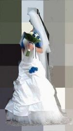Vendo abito da sposa tranne la stola e il pettinino del velo, il dietro e chiuso da un laccetto blu compreso taglia S 40/42