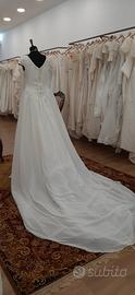 abito stile romantico in georgette bianco con lunga coda. taglia 44