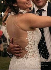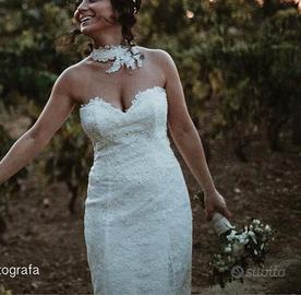 Meraviglioso abito da sposa a sirena, tutto in pizzo, scollo a cuore con dettaglio lavorato sul collo. Scollatura profonda ma elegante sulla schiena. Perfetto vendo in sua scatola originale con accessori inclusi. Taglia 40- 42.