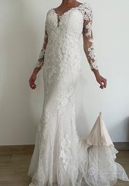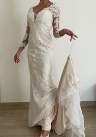 Maniche lunghe a 3/4 in tulle con ricami in pizzo e bottoncini avorio.