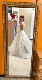 Vendo splendido vestito da sposa color avorio, modello ampio stile principessa. Corpetto in pizzo ricamato con scollo delicato e gonna voluminosa in tulle ✨ Il vestito è in ottime condizioni, ci tengo a precisare che il retro non mi si chiude perché non mi entra più ma ho messo una reference di come dovrebbe essere. Ideale per chi cerca un abito romantico, importante ma raffinato. 📏 Taglia: 38/40 👗 Chiusura: zip sul retro e bottincini