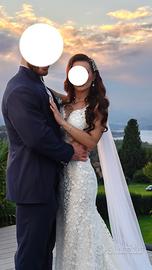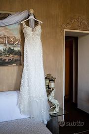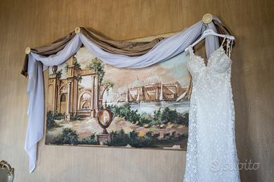 Abito stile Pronovias / Atelier Emé, elegante e romantico, effetto fiabesco Vendo il mio splendido abito da sposa modello a sirena, indossato solo un giorno a settembre 2025. Linea aderente che valorizza la silhouette, con tessuto in pizzo lavorato e finiture di altissima qualità. Dettagli: •Colore: bianco/avorio •Vestibilità: fasciante fino ai fianchi con apertura morbida sul fondo •Schiena elegante •Strascico lungo e velo coordinato incluso •Ottima struttura, sostiene bene senza risultare rigido Taglia: 36/38 S-M Altezza indossato: 160cm L’abito è in ottime condizioni, già lavato e pronto all’uso. Perfetto per chi cerca un look elegante, pulito e senza tempo. Prezzo: 2.000€ Zona: Saronno (VA) Pagamento in contanti e scambio di persona. Oppure pagamento su Subito.it solo con spedizione tracciata