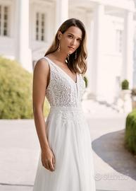 Vendo bellissimo abito da sposa, taglio moderno e raffinato. Taglia 42-44- M, fatto per altezza di 175cm facilmente personalizzabile.