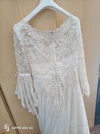 abito da sposa taglia 48 avorio comprato da Toi manica 3/4 con pizzo anche sul corpetto