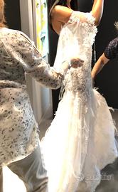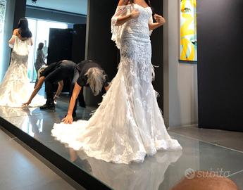 Vendo un bellissimo abito Alessandro Angelozzi couture , decorato a mano. Ho assolutamente adorato questo vestito e l'ho indossato per il ricevimento delle mie nozze. È sia classico che straordinariamente glamour. L'abito è leggero ed è molto facile muoversi. È una taglia 40 sono alta 167 cm e ho indossato scarpa con tacco di 8 cm. È in condizioni impeccabili. Non ci sono perle e piume mancanti che io possa vedere. Non ha macchie ed è stato inviato a specializzati per pulitura a secco e per la conservazione. Mi piace pensare che qualcun altro si godrà questo vestito molto speciale.