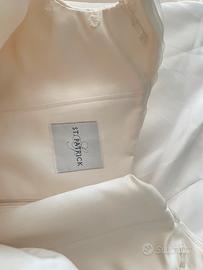 Taglia 44/46 completo di guanti lunghi, velo corto, portafedi e borsetta tutto confezionato con lo stesso tema del corpetto, cioè punti luce simil Swarovski. Fornisco altre foto ed ogni misura solo a chi realmente interessata.