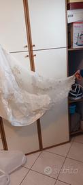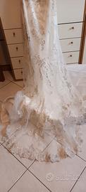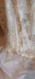 Vendo Abito da sposa bianco perla taglia 42 impreziosito da cristalli svaroski. Misure: circonferenza vita cm 75, Circonferenza petto cm 85, lunghezza davanti cm 150 più strascico. Disponibili altre foto