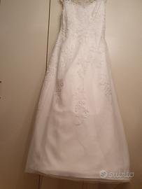 Vendo abito da sposa in pizzo, con strascico e sottogonna con cerchio, taglia 54, a metà prezzo. Disponibili come extra anche velo coordinato e accessori (borsetta, guaina con ganci per la gonna).
