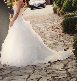 Abito da sposa Pronovias bianco monospalla, con perline e tulle, tg. 42-44