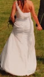 Vendo abito da sposa monospalla,taglia 46,già lavato ma da stirare.Coppe reggiseno inserite.Piccoli inserti sul corpetto.Non spedisco,solo ritiro a mano a Torino.