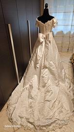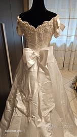 bellissimo abito da sposa Della Provonias con corpetto lavorato, strascico e fiocco sul retro, fiocchi sulle spalline , da lavare