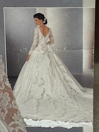 Abito da sposa ancora bellissimo,privo di imperfezioni,taglia 40 ,coda lunghezza 3,5 metri non staccabile,molto particolare vedi foto colore bianco,possibile visionarlo ,indossato una volta sola