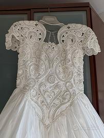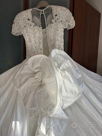 Vendesi abito da sposa ei Samuela Spose in taffetà, con corpetto decorato con pietre Swarovski e perle. Ad arricchire spalline imbottite e fiocco sul retro.