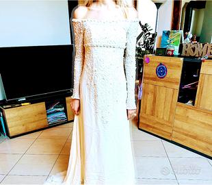 Vendo abito da sposa taglia 42 in perfette condizioni (necessita solo di stiro nella parte in fondo) conorato presso Atelier a castiglione delle stiviere. Le decorazioni che impreziosiscono l’abito sono fatte a mano