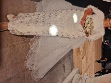 vendo abito da sposa in pizzo macramè, taglia 42, come da foto.