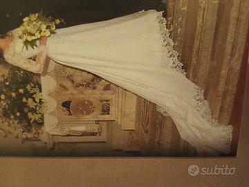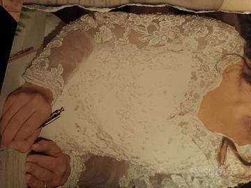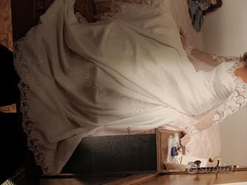 vestito da sposa bianco taglio scivolato con delicata scollatura avanti e dietro ,taglia 42 altezza figura cm.160.No spedizione.Disponibili anche scarpe n.36.