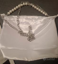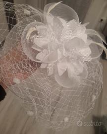 750: abito; cuscino portafedi; stola/ ecopelliccia/coprispalle pizzo/veletta/cerchietto strass/guanti corti/borsina raso mai utilizzati.