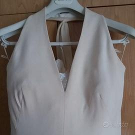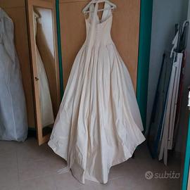Abito in ottime condizioni. Da lavare a secco. Taglia 40/42. Con sottogonna in tulle e dotato di stola, da un lato in seta, dall'altro in velluto. Colore della seta. Seta al 100%. Spedizione gratuita in Italia con bonifico o consegna in prossimità dietro pagamento.