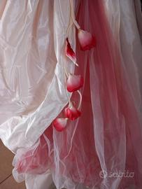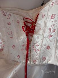 Abito da sposa valentini,molto particolare avendo dettagli color ciliegia,completo di velo,scarpe e coprispalle ,posso fare altre foto e dare eventuali altre informazioni