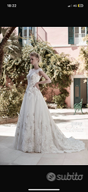 Vendo abito da sposa stile principessa Taglia 44-46 Indossato da sposa alta 155 cm con tacco da 12 cm. Il vestito è stato conservato con cura nella sua sacca originale.