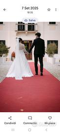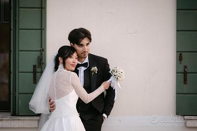 Occasione Abito da sposa acquistato a settembre 2025 nell atelier Benetti a Venezia, valore 2400,00 euro, taglia 42 . Descrizione splendido abito da sposa indossato una sola volta, in condizioni eccellenti. L'abito è realizzato con una gonna ampia, in tessuto mikado raso liscio, fluida ed elegante, e un raffinato corpetto in pizzo siciliano lavorato, con maniche lunghe trasparenti che donano leggerezza e grande femminilità. Il taglio è classico ma senza tempo, molto luminoso, adatto sia a cerimonie religiose che civili. Il pizzo del corpetto pezzo unico valorizza la figura senza risultare eccessivo, mentre la gonna cade morbida creando un effetto molto armonioso dal giro vita fino a tutta la lunghezza della gonna bottoncini ricoperti dello stesso tessuto. Incluso velo lungo coordinato, cintura in tessuto da indossare senza il bolero, e sottogonna con tre cerchi. Tutto come da foto. Disponibile per prova su richiesta. Per qualsiasi informazione e foto aggiuntiva scrivimi senza problemi.