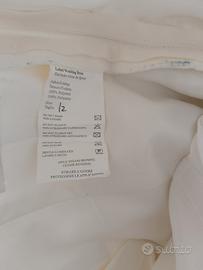 Abito da sposa Venus con strascico, taglia 42, completo di velo lungo. Scollo a cuore con bustino impreziosito con strass. Sul retro sono stati applicati dei bottoncini in raso rossi che si possono togliere. L'abito, dopo l'utilizzo è stato lavato, stirato e riposto nel suo sacco contenitore.