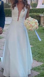 Vendo abito da sposa. Tessuto misto seta. Con dettaglio corpetto di pizzo. Schiena scoperta. Molto semplice. Strascico di circa 1 m e 50.