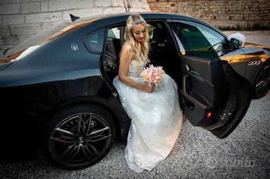 Abito sartoriale da sposa in tulle ricamato, molto elegante, semplice ma sensuale. Il corpetto è cucito a mano, come nuovo, indossato solo per le foto, volendo si può realizzare il velo e anche maniche staccabile. Scontato 50 %