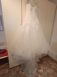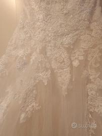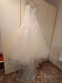 Abito da sposa taglia 46 usato nel 2018. Materiale maglina Di seta e pizzo. Con cerchio incluso, No velo Consegna a mano no spedizione. Pagato 2600€