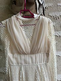 Tessuti: voile leggero, inserti a rete geometrica e fodera in raso.
