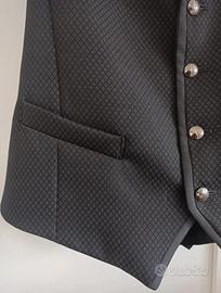 Abito sartoriale per matrimonio tg.48 uomo, grigio scuro, composto da giacca, gilet con trama, pantalone e camicia in cotone/lino. Nessun difetto, splendidi particolari. Prezzo trattabile.