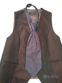 Abito da sposo/cerimonia,in taffettà colore bordeaux gessato, nuovo, firmato Lino Valeri