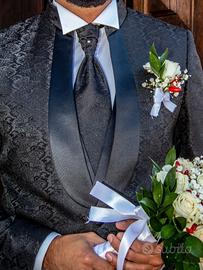 Abito da sposo damascato Quintodecimo come nuovo taglia 54 ma veste da 48. È compreso camicia,cravattone,gilet,giacca e pantalone.