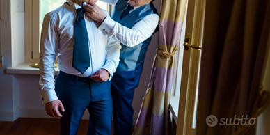 Vendo abito da sposo Luigi Bianchi blu modello 3458/3 - 33017/3 completo di giaccia , gilet , pantalone , cravattone con punto luce swarowski , 2 camicie di cotone 100% diplomatiche e gemelli . Vestibilità asciutta perfetto per fisici con buone spalle ed altezza intorno 165 cm . Indossato una sola volta. Dovete comprare solo le scarpe