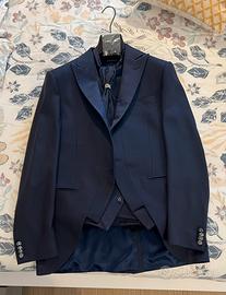 Colore blu, con giacchino e cravattone, disponibile anche camicia da cerimonia.