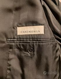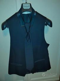 Abito da cerimonia come nuovo. Smoking color nero lucido con panciotto e cravattino. Particolarità dell'abito Swarovski sul colletto e sulla bordatura della giacca. Come da foto.