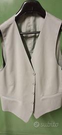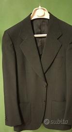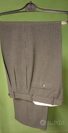 Abito da sposo del 1976 formato da giacca nera marca SIR DONALD'S taglia 48 con gilet grigio chiaro e pantaloni grigio scuro gessati marca PIERRE. Capi ben curati soprattutto nei particolari, perfetto nelle fodere e nelle cuciture.